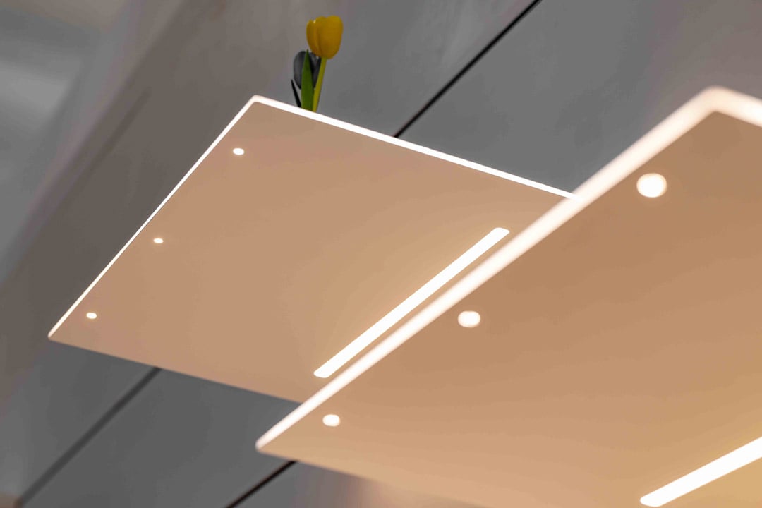 Le due aree costruiscono una narrazione spaziale completa: dalla definizione dello spazio alla progettazione della luce. Un approccio che supera la presentazione del singolo prodotto per mostrare come sistemi, luce e struttura possano operare in modo integrato, dando forma a spazi più chiari, modulari e sostenibili.